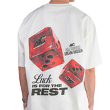 Elevate your fashion with the premium AKC Dice Tee. Its oversized cut and relaxed drop shoulders offer a roomy fit, while its bright white base ensures you stand out on the streets.