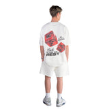 Elevate your fashion with the premium AKC Dice Tee. Its oversized cut and relaxed drop shoulders offer a roomy fit, while its bright white base ensures you stand out on the streets.